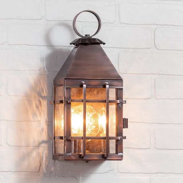 The comforting design allows the Barn Light to add light and warmth to a variety of architectural style homes. With clean lines and solid metal construction, the lanterns will last a lifetime. Available in antique copper or solid weathered brass. Five year guarantee.